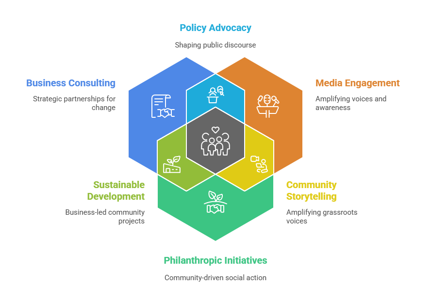 United Impacts Group operates through a hybrid, cross-sectoral model. Rather than relying on a single approach, the Group integrates business services, media engagement, and social impact & research initiatives to help translate awareness into informed action and meaningful outcomes. The Group provides strategic direction, governance, and shared values across all its initiatives.